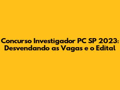 E aí, galera! Se você tá sonhando em fazer parte da Polícia Civil de São Paulo como investigador, a hora é agora! O concurso investigador PC SP 2023 tá na área e promete ser uma chance de ouro pra quem busca estabilidade, um salário bacana e, claro, a satisfação de servir e proteger a sociedade. Fica ligado que a gente vai te contar tudo que você precisa saber pra não ficar de fora dessa jornada rumo à farda!