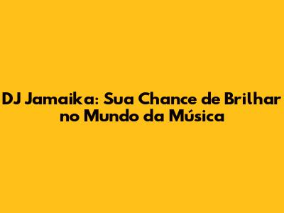DJ Jamaika: Sua Chance De Brilhar No Mundo Da Música