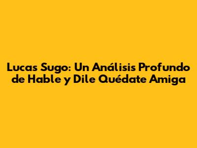 Lucas Sugo: Hable Y Dile Quédate Amiga - Un Análisis Profundo