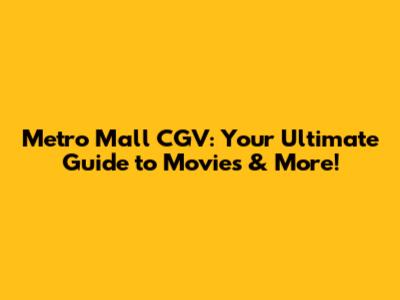 Discovering Metro Mall CGV: A Cinematic Paradise