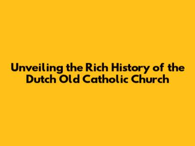 Unveiling The Rich History Of The Dutch Old Catholic Church